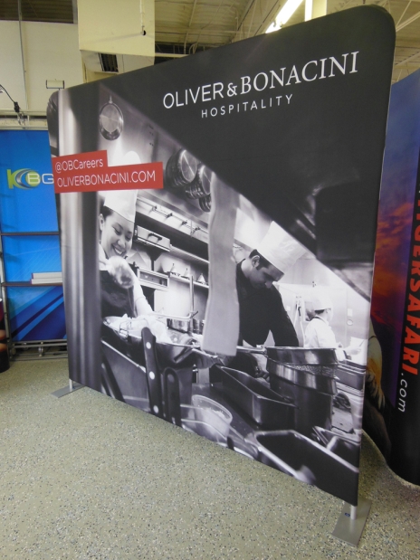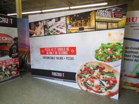 This system snaps together quickly and the graphics pull tightly over the frame, as a result wrinkling is less common when compared to the tension fabric systems on option 2. In addition, the 2nd layer of fabric on the back of the frame lessens some of the lighting shadows that occur at trade shows.