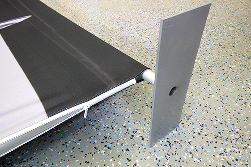 We also have framing systems available to support these banners that come in a 10ft standard length but can also be ganged together to form a 20ft or 30ft length. Although this is the least expensive option one small disadvantage would be the inability to completely remove small, subtle ripples in the material, it's not a stretch fabric material so removing these can be difficult.