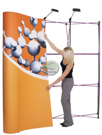 Pop-up displays are a cost effective way to present a strong, vibrant company image. The Coyote trade show display is extremely simple to use and is very light weight. This display uses “Rare Earth Neo Magnets” on it’s channel bars and the frame which make it very fast to set up and take down. The Coyote pop-up display is available in many different sizes and comes with full graphic panels or fabric panels.