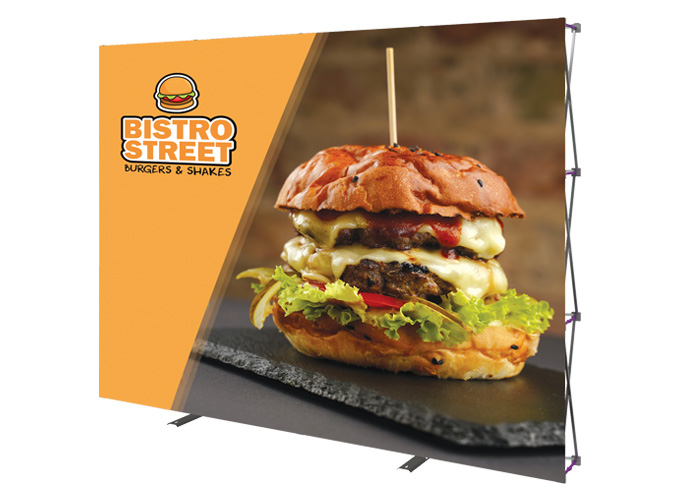 We have many pieces that can help your food & wine trade show display look great. Choose from our selection of easy to set-up banner stands, impactful fabric back walls, full colour table cloths, indoor and outdoor marketing flags, and high quality promotional items – all of which are perfect for food & wine expos.