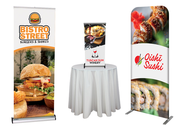A quality banner stand is a cost effective and easy way to present your brand, showcase a particular product, or bring attention to a special promotion. They are also great for festival organizers as well, providing easy solutions for wayfinding around your food & wine event.